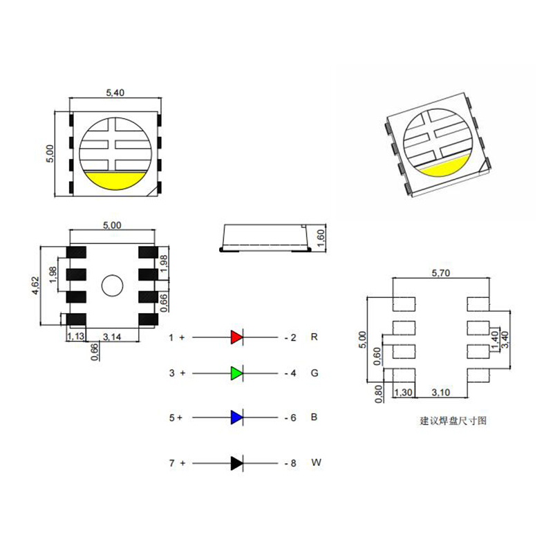 5050RGBW四合一燈珠是未來照明領(lǐng)域的全新選擇,它的多彩、高亮度、高能效比等特點(diǎn),使得其在室內(nèi)照明、車載照明、舞臺(tái)